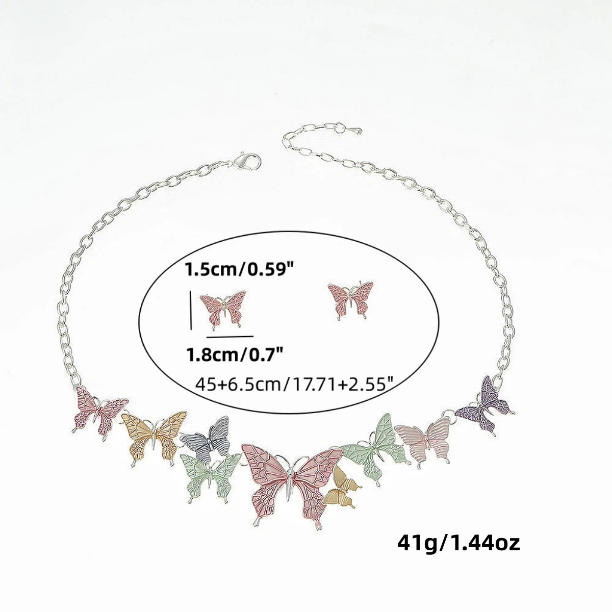 3pcs Colorful Butterfly Necklace and Earrings Set