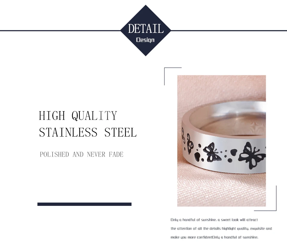 Why choose stainless steel: 1. No rust; 2. Not Allergic; 3. Powerful of anti-acid,anti-alkali; 4. No deformation; 5. Do not fade.