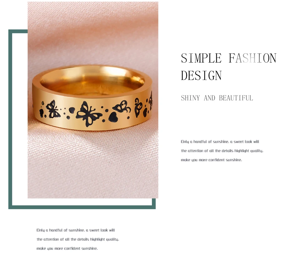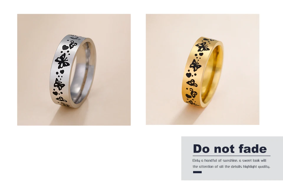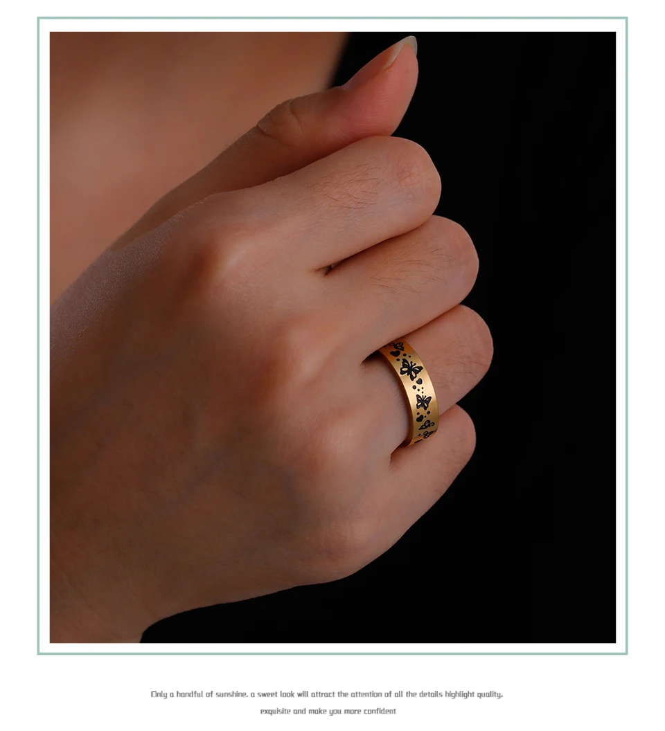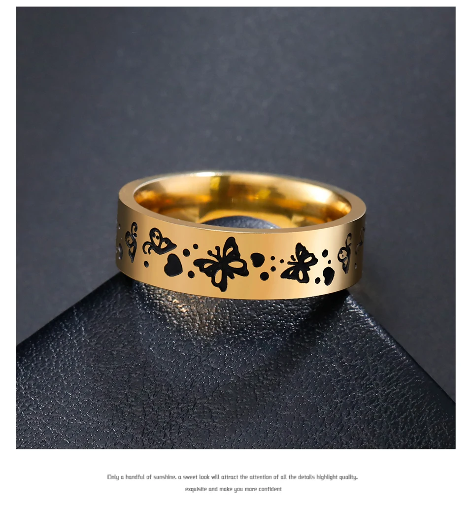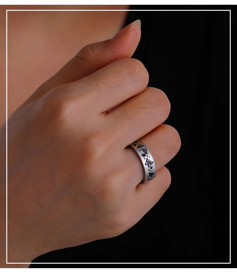 Stainless Steel Rings for Women Men Butterfly Bohemian Jewelry